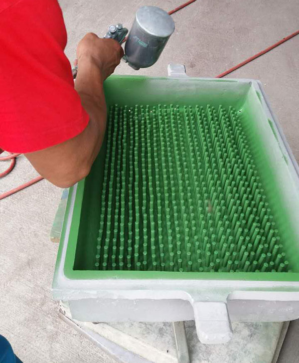 在發(fā)泡過程中有很強(qiáng)的粘性,同時發(fā)泡劑里面含有部分腐蝕性材料。特氟龍涂層具有很好的不粘性,很好防腐蝕性??梢越鉀Q乳膠發(fā)泡加工過程中的這些問題。使得乳膠床墊枕頭枕芯發(fā)泡過程中脫模很容易,不會由于和模具的粘連而拉壞,大大提高了成品率。而且特氟龍涂層保護(hù)了發(fā)泡模具的鋁模不會被腐蝕氧化,長久如新。目前市場上廣泛使用的廣東等小企業(yè)開發(fā)的特氟龍涂料,價格低,但是使用壽命短,一般都不足1500模。目前我們采用乳膠床墊枕頭枕芯發(fā)泡沫模具專用特氟龍進(jìn)口涂料,使用壽命最低3000模,一般能用到3個月到4個月。乳膠發(fā)泡模具特氟龍涂料防沾性強(qiáng)、操作溫度、結(jié)合力好。是目前市面上性能優(yōu)、性價比高的乳膠發(fā)泡模具特氟龍涂料。
